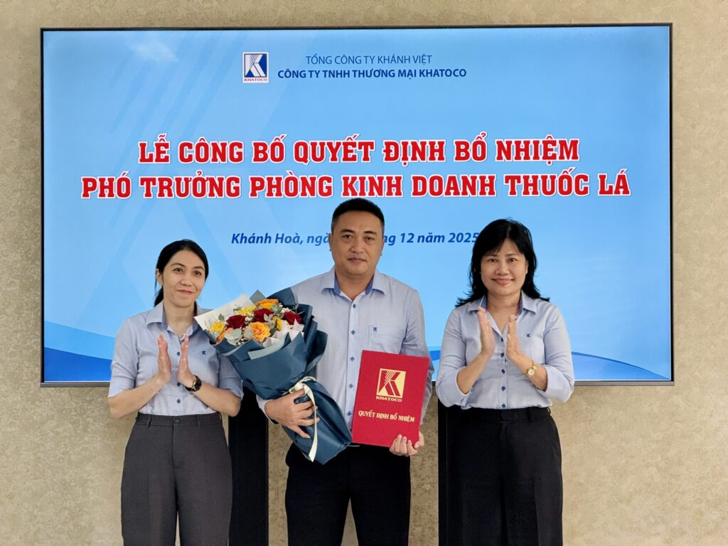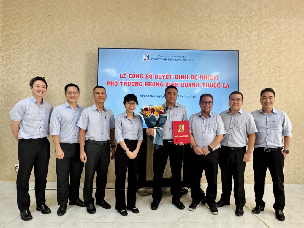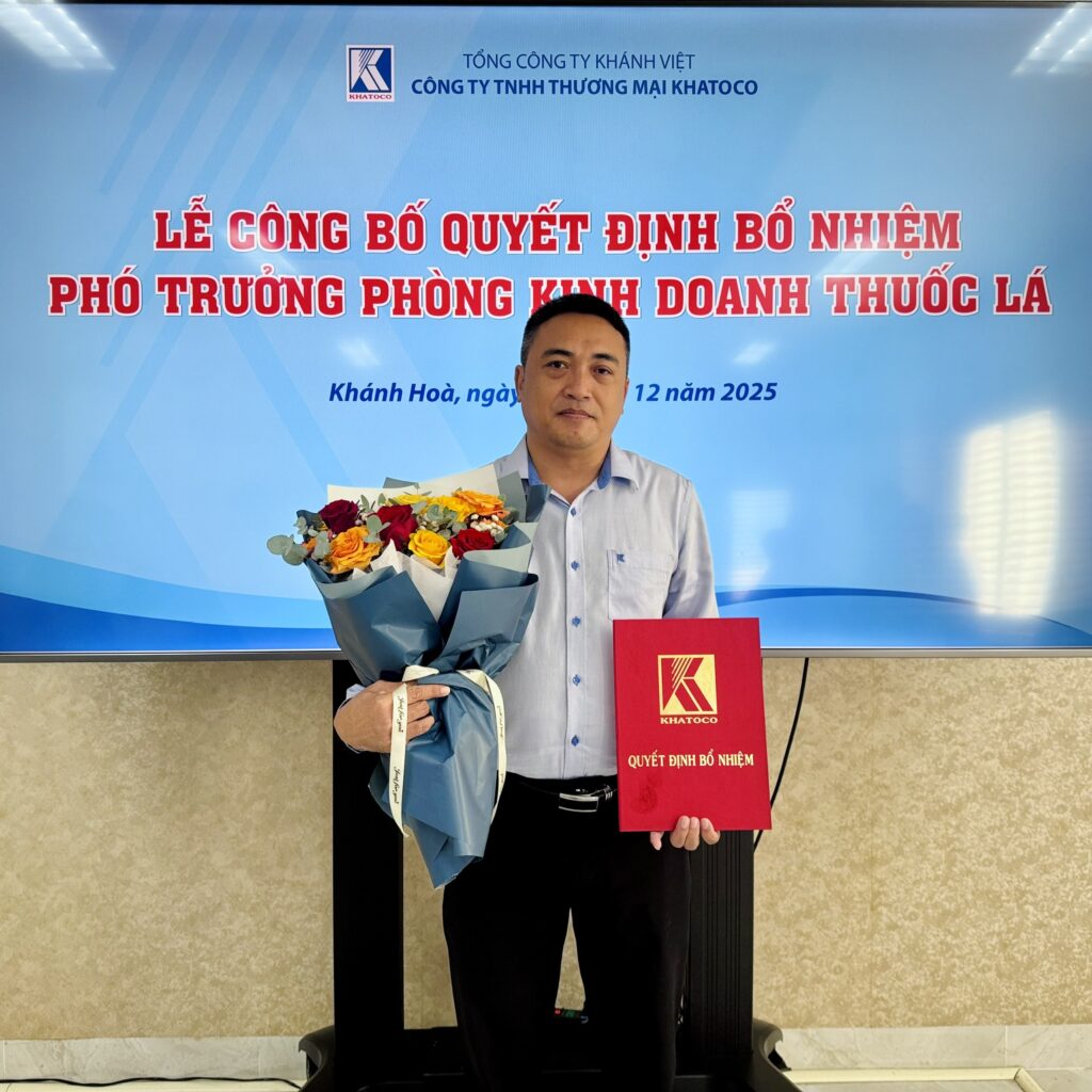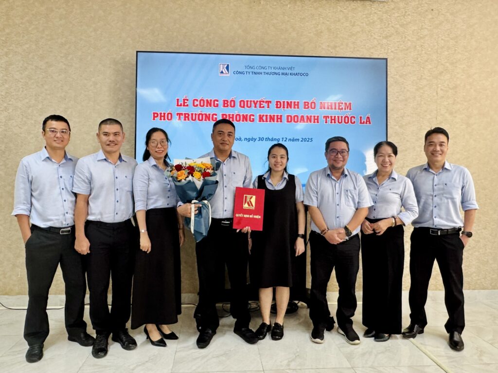 Sáng ngày 30/12/2025, tại trụ sở công ty Thương mại Khatoco đã diễn ra buổi lễ công bố quyết định bổ nhiệm chức vụ Phó Trưởng phòng Kinh doanh thuốc lá đối với ông Bùi Công Sơn.